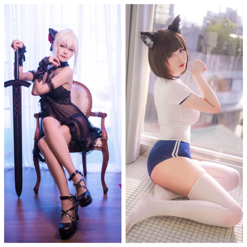 有意思的是,她颜值属于 “爱憎分明” 型,喜欢的人觉得美得不行,不喜欢的可能就 get 不到。但讲真,她作品里的灵气才是关键!别人 cos 蕾姆就摆标准姿势,她偏要加戏 —— 举着流星锤假装绊倒,鼓着腮帮子的样子萌到心化。而且她和妹妹 Arty 亚缇经常合作出片,黑呆毛系列的合照看得人直呼 “神仙姐妹”。